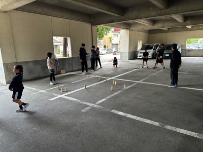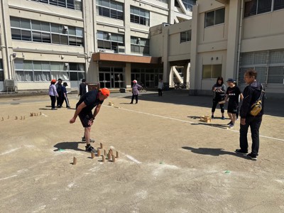 高陵小学校体育館ピロティにて「モルック大会」を開催しました。 モルックとは、フィンランド生まれのニュースポーツで、木製の棒「モルック」を投げて、数字が書かれた木製のピン「スキットル」を倒し、先に50点ちょうどに達したチームが勝利となるゲームです。老若男女問わず誰でも一緒に楽しめることが特徴で、運と技術、戦略性が求められる奥深いスポーツです。 あいにくの雨模様でしたが、笑顔いっぱいのプレーで会場は大いに盛り上がりました。 モルックは気軽に楽しめる競技です。今後も継続的に開催したいと思います。